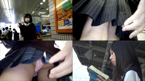 そして電車内。まずは顔撮り。その後カメラは下半身を映します。ブルーのチェックのスカートですね。