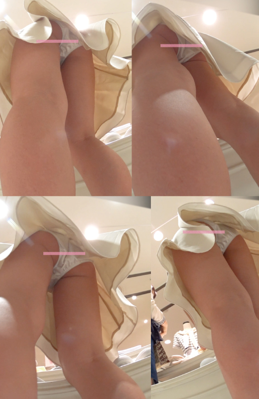 Pcolleで扱っている、「新フルHD高画質パンチラ逆さ撮り045 ホワイトスカートホワイトパンティー店員さん」(パンチラえんじぇる氏)の動画のレビューです。