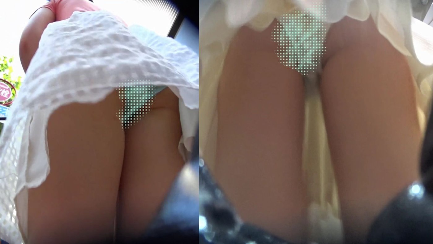 歩いているのを斜め後ろからローアングルで撮っているので、スカートからパンツがチラチラ見える、まさにパンチラという感じで撮られています。