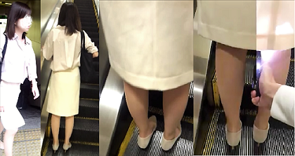 逆さ撮りもすごくやりにくいと思うのですが、今回はクリーム色の膝下タイトスカートを履いた女性のパンチラ動画になります。