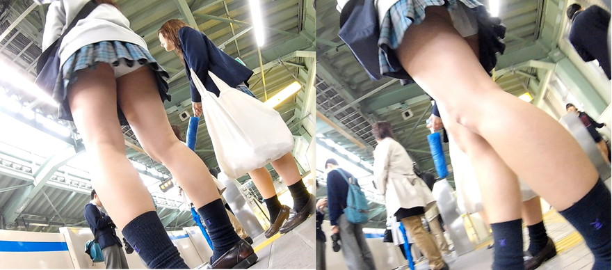 右側は電車内?のようで、逆さから白いパンツをしっかり撮っています。この写真でもう一人の顔も出ています。