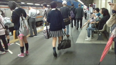 ホームにいる動画から始まっていたので、そのまま電車の逆さかと思ったら・・・シーンが変わって0:50くらいから階段になり、スカートをめくると・・・綿の薄いブルーのパンツが見えました。