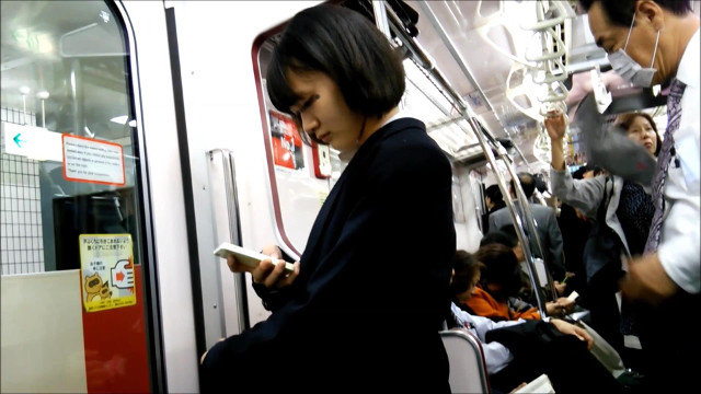 鞄からなにか出して食べながら歩いてる・・・・イメージまんま。