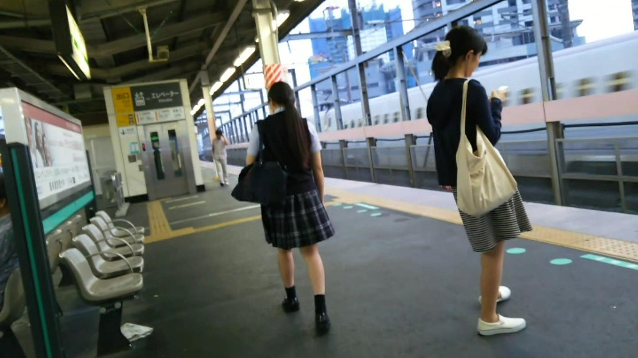動画を再生すると駅のホームのベンチに腰かけているターゲットの制服女子ちゃんが映ります。